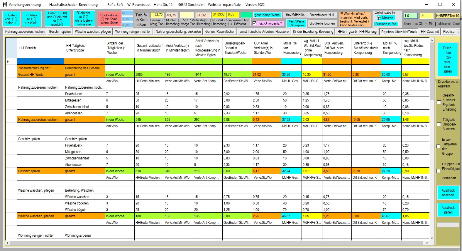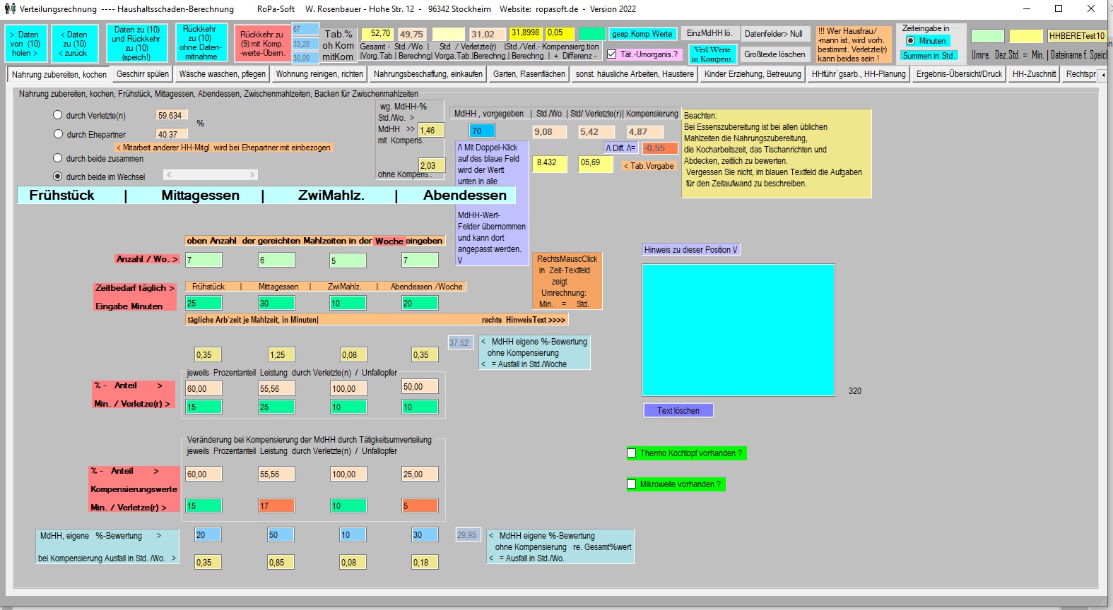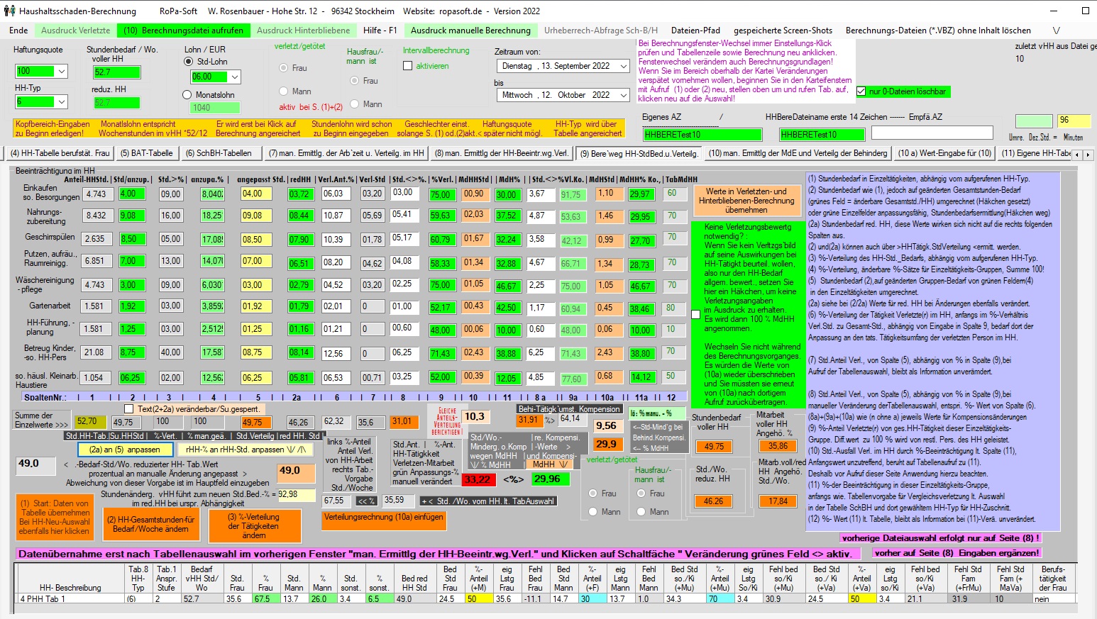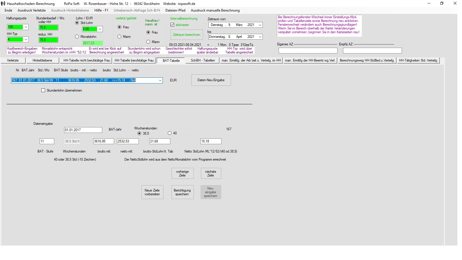 berechnet. Im Programm wird der HH-Schaden allein für den Ausfall von HH-Arbeitszeiten ermittelt.