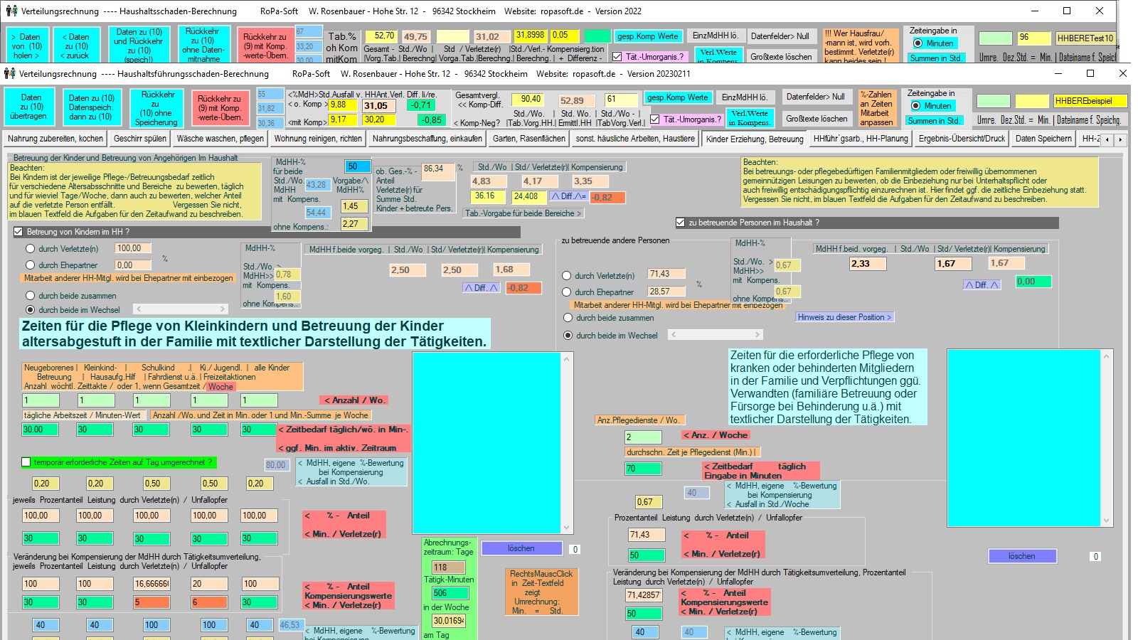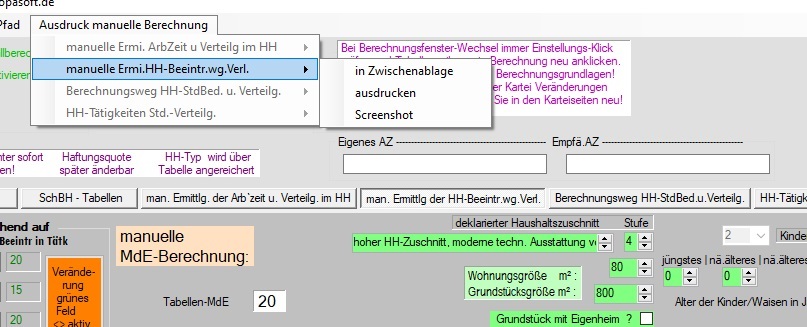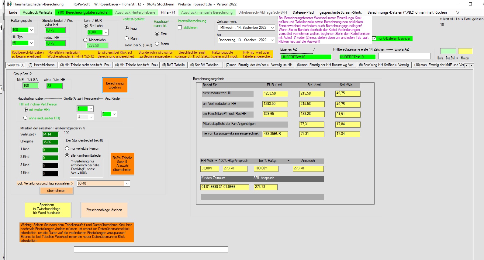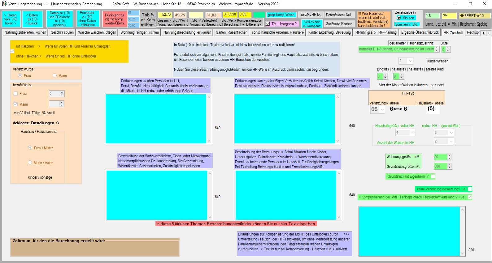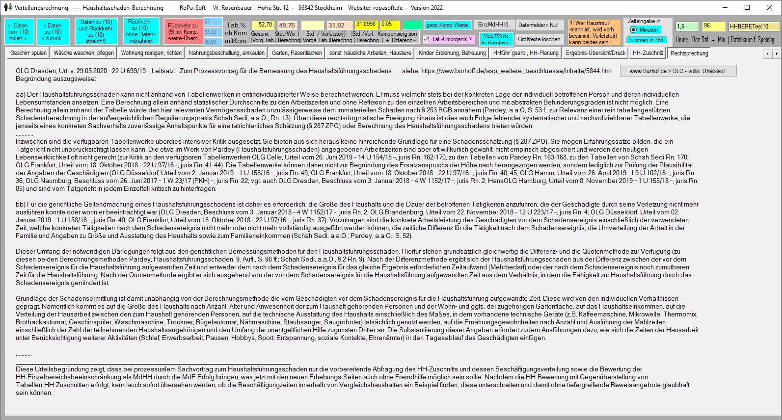 Das Programm ermöglicht Ihnen, den Berechnungsweg an dieses Urteil anzupassen und die Beschreibung des Haushalts sowie die Zeitenermittlung als Sachvortrag