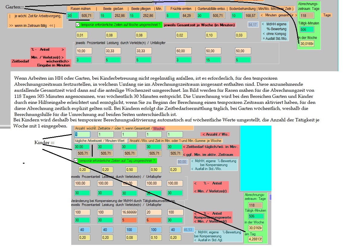 Alle Stundenausfälle dieser prozentual unterschiedlichen Einzeltätigkeiten ergeben die Gesamtsumme der Std.-Behinderung im HH (je Woche).
