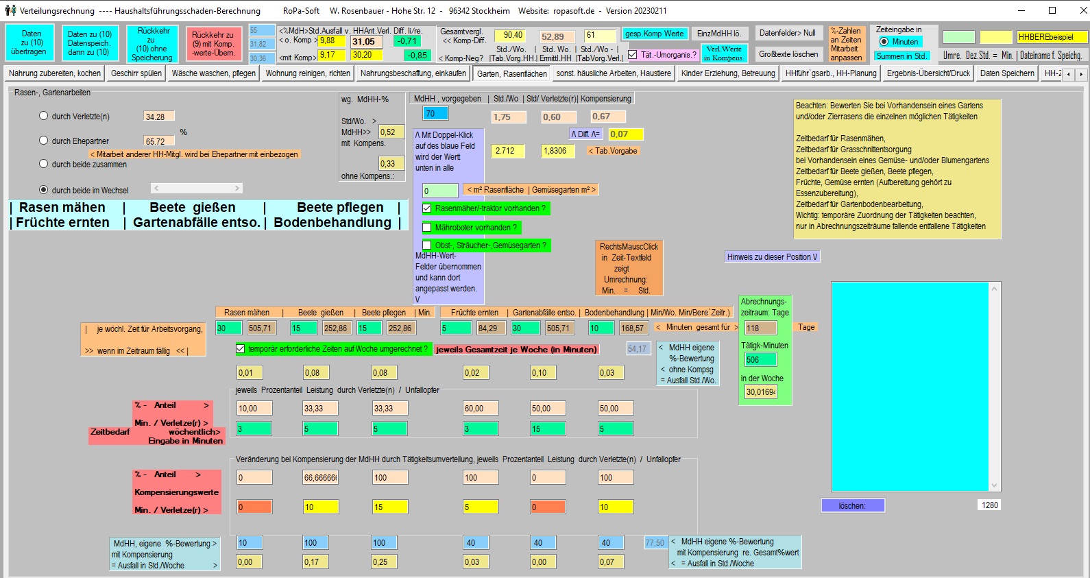 Sie sollen lediglich aufzeigen, von welchen Prämissen ausgehend das Programm den Haushaltsführungsschaden