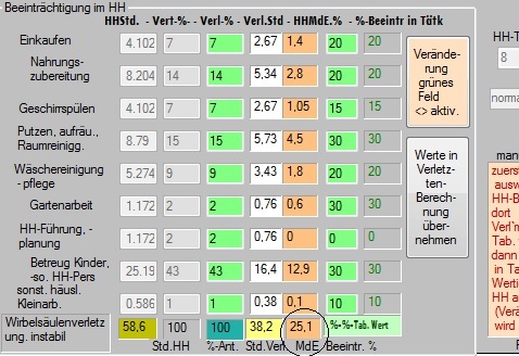 dem Fall angepasst werden und ermöglichen erst dann, die MdHH für die jeweils tatsächlichen Tätigkeitsanteile zu ermitteln. So kann der Tabellengesamtwert der Hausfrau